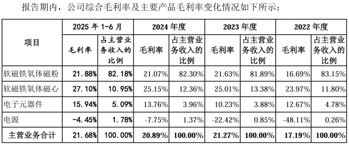 现实却是,除磁粉外,其他三大板块在2024年均为亏损:磁心板块合计亏374万元,电子元器件亏454万元,电源亏981万元,而更新版招股书未再披露这些板块的盈亏情况。
