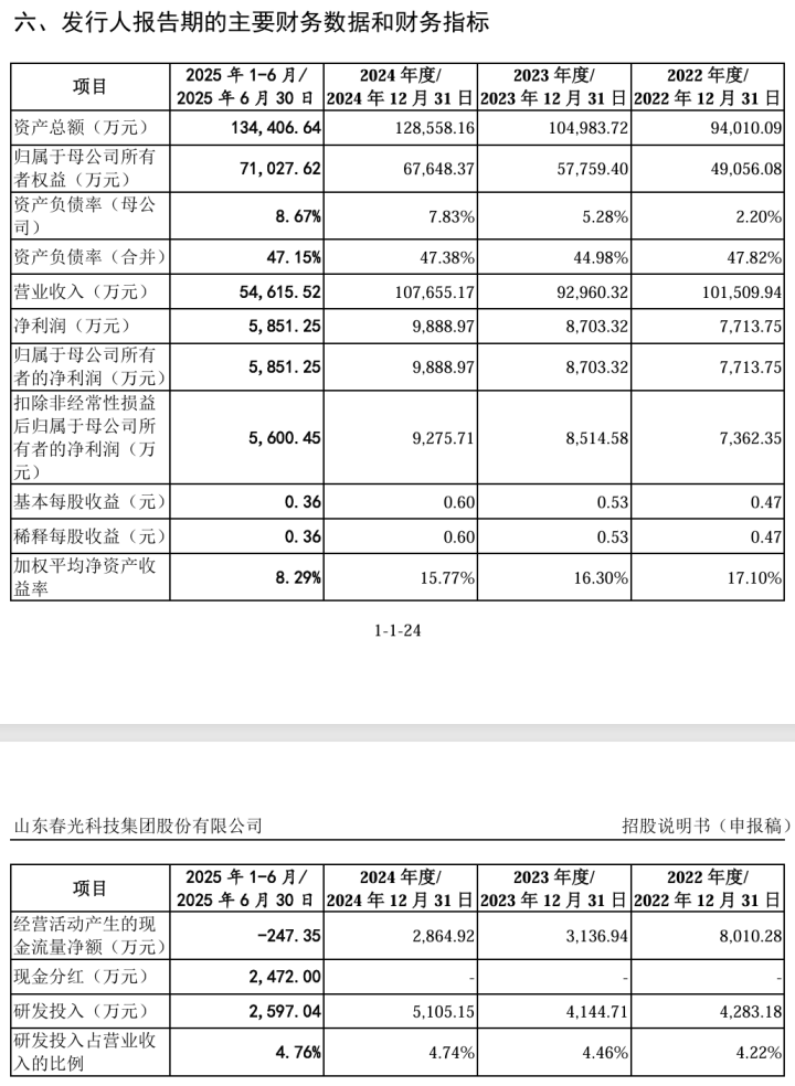 山东春光科技集团股份有限公司(下称“春光集团”)在2025年9月因财务资料过期中止审核后,12月30日通过更新招股书重启创业板上市进程。但最新披露的数据显示,公司虽在核心业务保持领先,却面临盈利质量弱化和结构失衡加剧的压力。